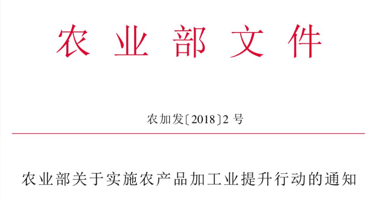 為深入貫徹黨的十九大精神,實(shí)施鄉(xiāng)村振興戰(zhàn)略,根據(jù)《中共中央國務(wù)院關(guān)于實(shí)施鄉(xiāng)村振興戰(zhàn)略的意見》和《國務(wù)院辦公廳關(guān)于進(jìn)一步促進(jìn)農(nóng)產(chǎn)品加工業(yè)發(fā)展的意見》(國辦發(fā)〔2016〕93號(hào))要求,進(jìn)一步推動(dòng)我國農(nóng)產(chǎn)品加工業(yè)轉(zhuǎn)型升級(jí),促進(jìn)農(nóng)業(yè)農(nóng)村經(jīng)濟(jì)高質(zhì)量發(fā)展,為鄉(xiāng)村振興提供新動(dòng)能,農(nóng)業(yè)部決定啟動(dòng)實(shí)施農(nóng)產(chǎn)品加工業(yè)提升行動(dòng)?,F(xiàn)將有關(guān)事項(xiàng)通知如下。